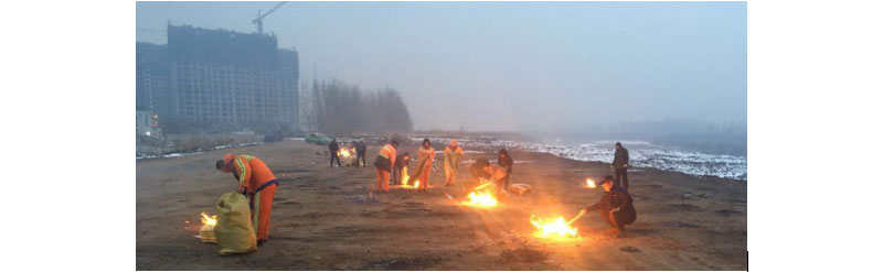 清理彩虹橋南側(cè)越冬垃圾