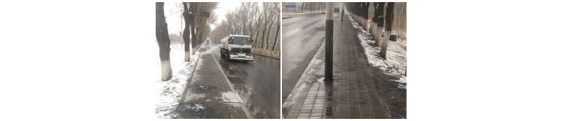 主要路段人行步道方磚的清掃效果